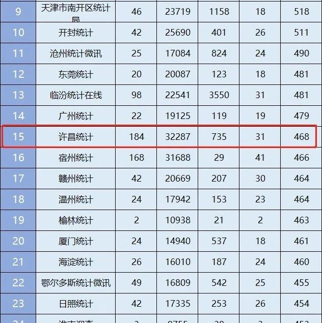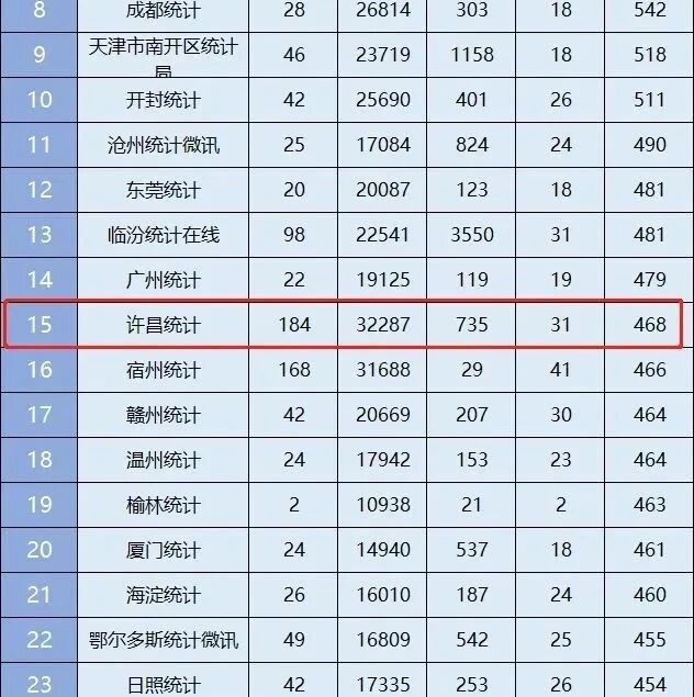 23!“许昌统计”入选4月份全国市级统计微信公众号排行榜