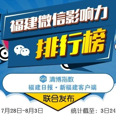 福建微信影响力2024年第31周排行来了!7月榜出现新“第一”!